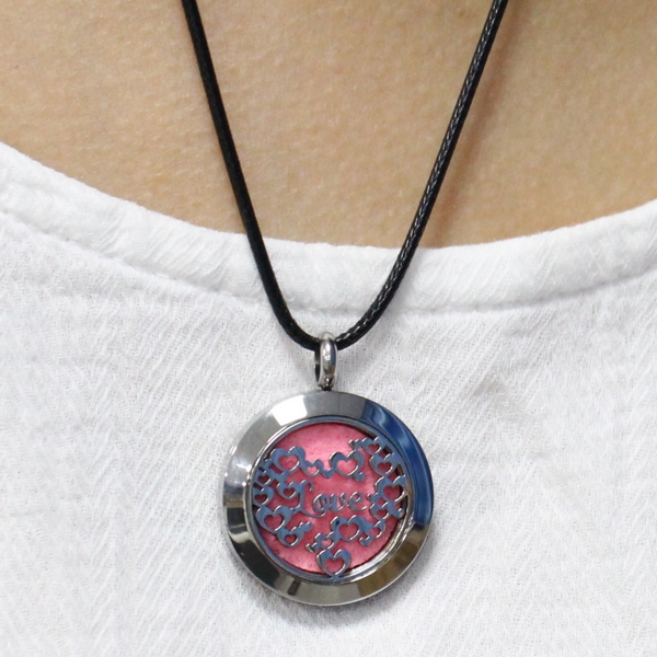 Un bijou tendance et utile contenant 5 buvards de différentes couleurs permettant de changer d'huiles essentielles ou de senteurs facilement. Le motif "Love" de ce modèle est indémodable et plaira à tous pour toute occasion. Un bijoux tendance et un cadeau absolu.